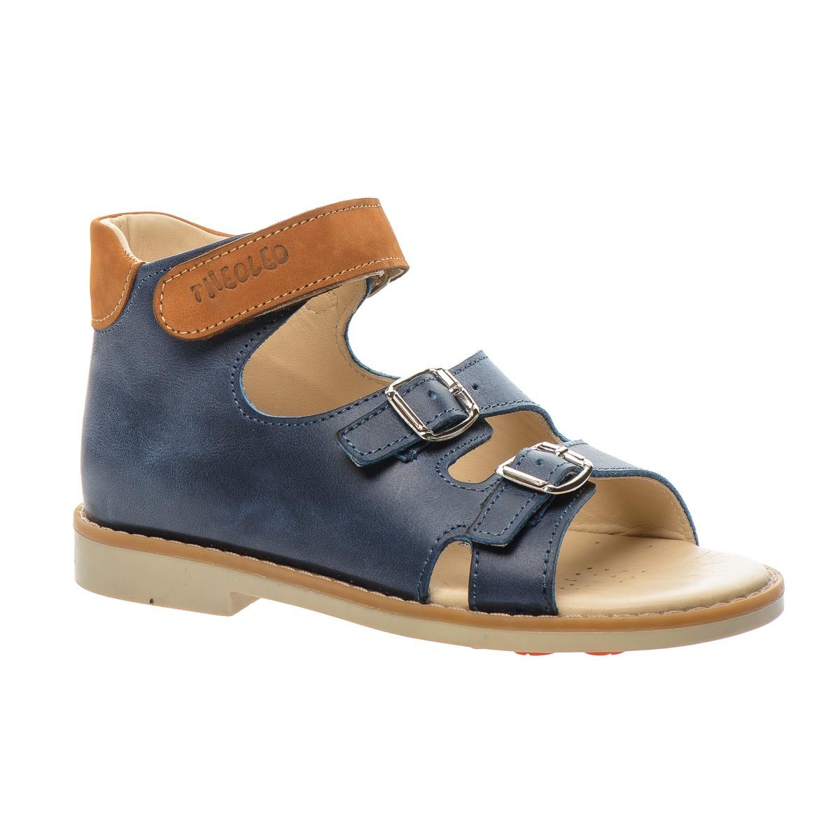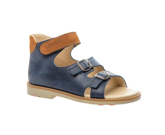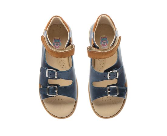 THEO LEO 1214 - сандалі для хлопчика виконані з натуральної шкіри. Липучка та дві металеві застібки допоможуть зафіксувати взуття по повноті стопи. Підкладка та устілка з анатомічним супінатором виготовлені з натуральної шкіри. Підошва з термопластичної гуми з каблуком Томаса - не ковзає і добре амортизує. Завдяки каблуку Томаса дитяча стопа не буде завалюватися всередину.