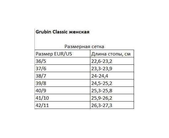 Взуття Grubin виготовляється виключно з екологічно чистих матеріалів, які безпечні для здоров'я людини і навколишнього середовища в тісній співпраці з лікарями-ортопедами. Матеріалом підошви є суміш кори Середземноморського коркового дуба з натуральним латексом, за рахунок чого підошва міцна, гнучка і володіє відмінними амортизаційними властивостями для комфортної ходьби. Верхній шар устілки - велюрова шкіра найвищої якості, яка вбирає вологу, не ковзає і не натирає. Низ підошви з високоякісної мікропористої гуми забезпечує стійкий контакт з твердими поверхнями і довговічний у носінні. Матеріали верху з натуральних і штучних матеріалів спеціально оброблені зсередини, щоб уникнути натирання шкіри стопи. Всі деталі вирізаються і кріпляться вручну.