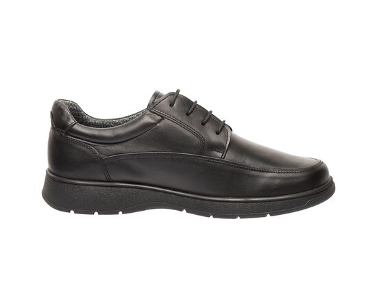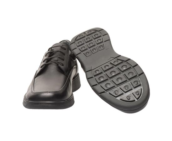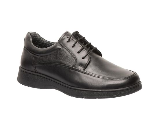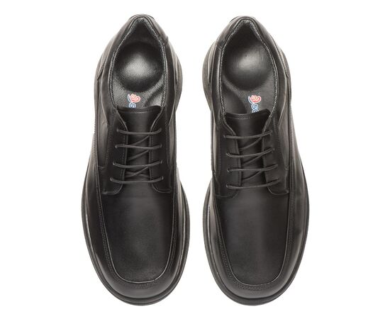 Взуття виготовлене з м’якої натуральної шкіри, класичного чорного кольору, зі шнурівкою для надійної фіксації, забезпечує максимальну зручність, допоможе при профілактиці та лікуванні плоскостопості будь-якого типу чи вальгусної деформації. Створені для широкої стопи без шкоди для стилю та підтримки, туфлі підійдуть для тих, хто має кісточку. Шкіра, яка використовується для виготовлення цього взуття, розтягується і рухається з вашою ногою під час ходьби, легка, як пір'їнка. Кожна пара забезпечує зручну посадку і достатньо простору. Гнучка підошва з поліуретану забезпечить чудову гнучкість та амортизацію, поглинання ударів для легкого руху. Анатомічна форма сприяє правильному розподілу навантаження на стопу, зменшує ризик виникнення втоми та дискомфорту, допомагає підтримувати склепіння стопи