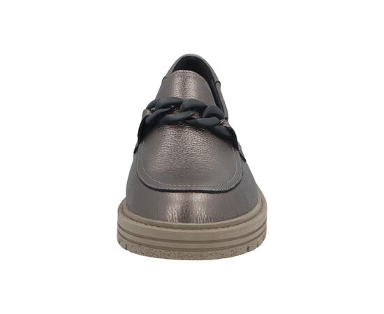 Стильні, легкі жіночі туфлі лофери Kelly поєднують сучасний дизайн і комфорт у щоденному носінні, чудово підійдуть для прохолодної пори року. Вони повністю виготовлені з натуральної шкіри з легким металічним відтінком, вони виглядають вишукано та універсально. Декоративний масивний ланцюжок на підйомі додає модного акценту й робить модель оригінальною. Стильний дизайн дозволить поєднувати їх з різними образами.