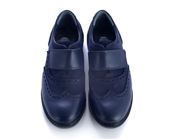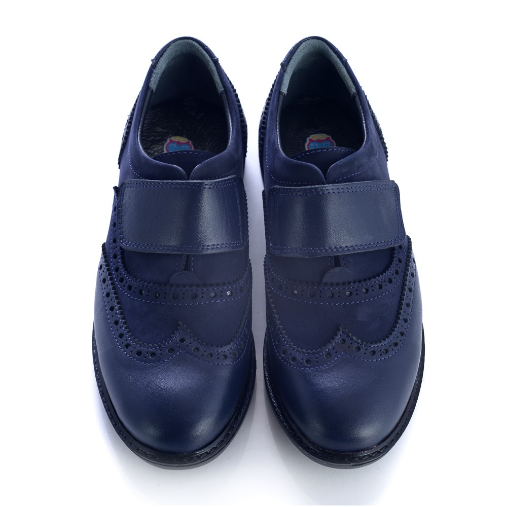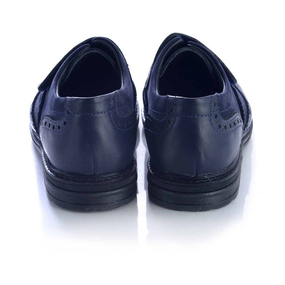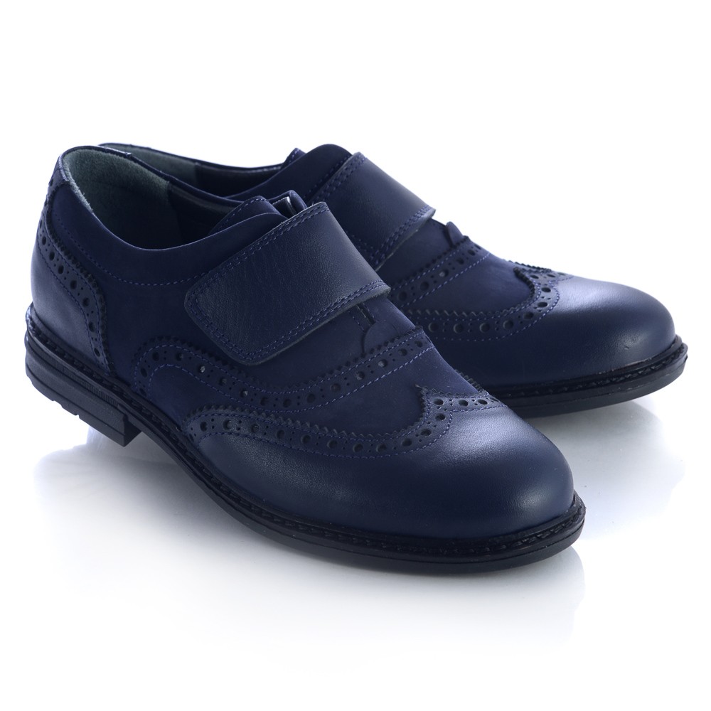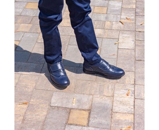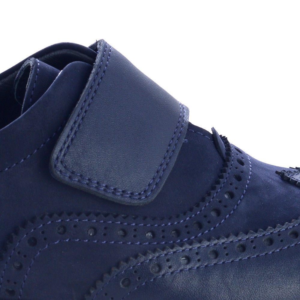 Theo Leo 470- класичні туфлі для хлопчика виконані з натуральної шкіри і натурального нубуку синього кольору, прекрасно виглядають на нозі та доповнять гардероб. Надійно фіксуються на нозі за за допомогою однієї широкої липучки. Відмінне доповнення до штанів або джинсів.