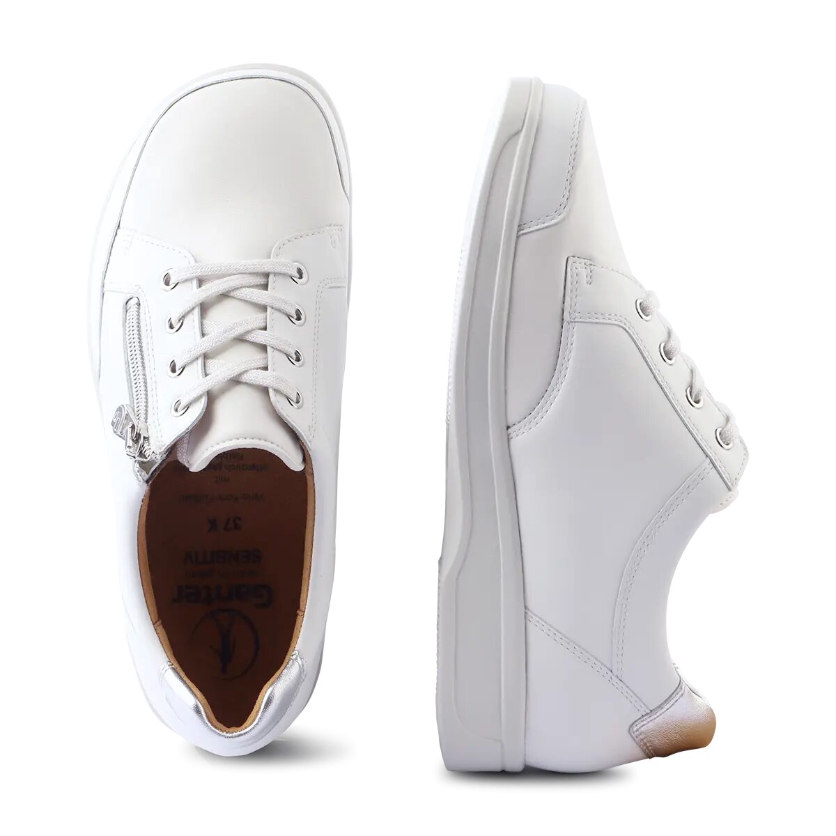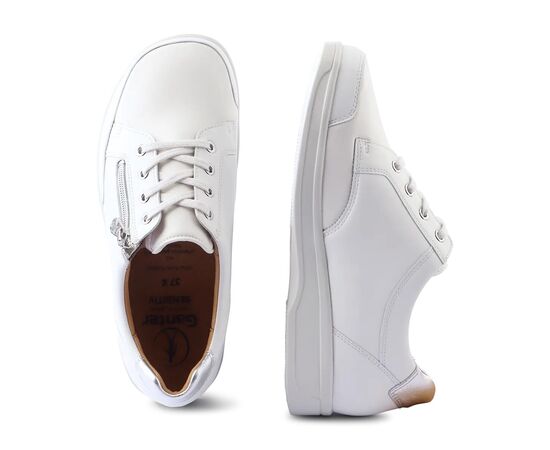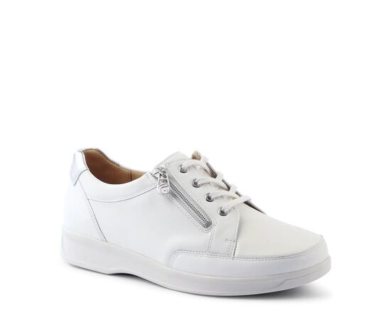 Підкладка Sensitiv особливо м'яка і ніжна до стопи, забезпечує відмінний комфорт. Шари мають антибактеріальний ефект завдяки срібному покриттю. Еластичні вставки доповнюють і без того великий простір в передній частині стопи. Це особливо корисно для хворих на ревматизм, діабетиків та людей з деформацією стопи. Світлі кольори, мінімалістичний дизайн та високоякісні матеріали роблять KARIN успішним універсальним взуттям. Блискавка, а також індивідуально регульовані шнурки, дозволяють вам швидко взути це зручне жіноче взуття.